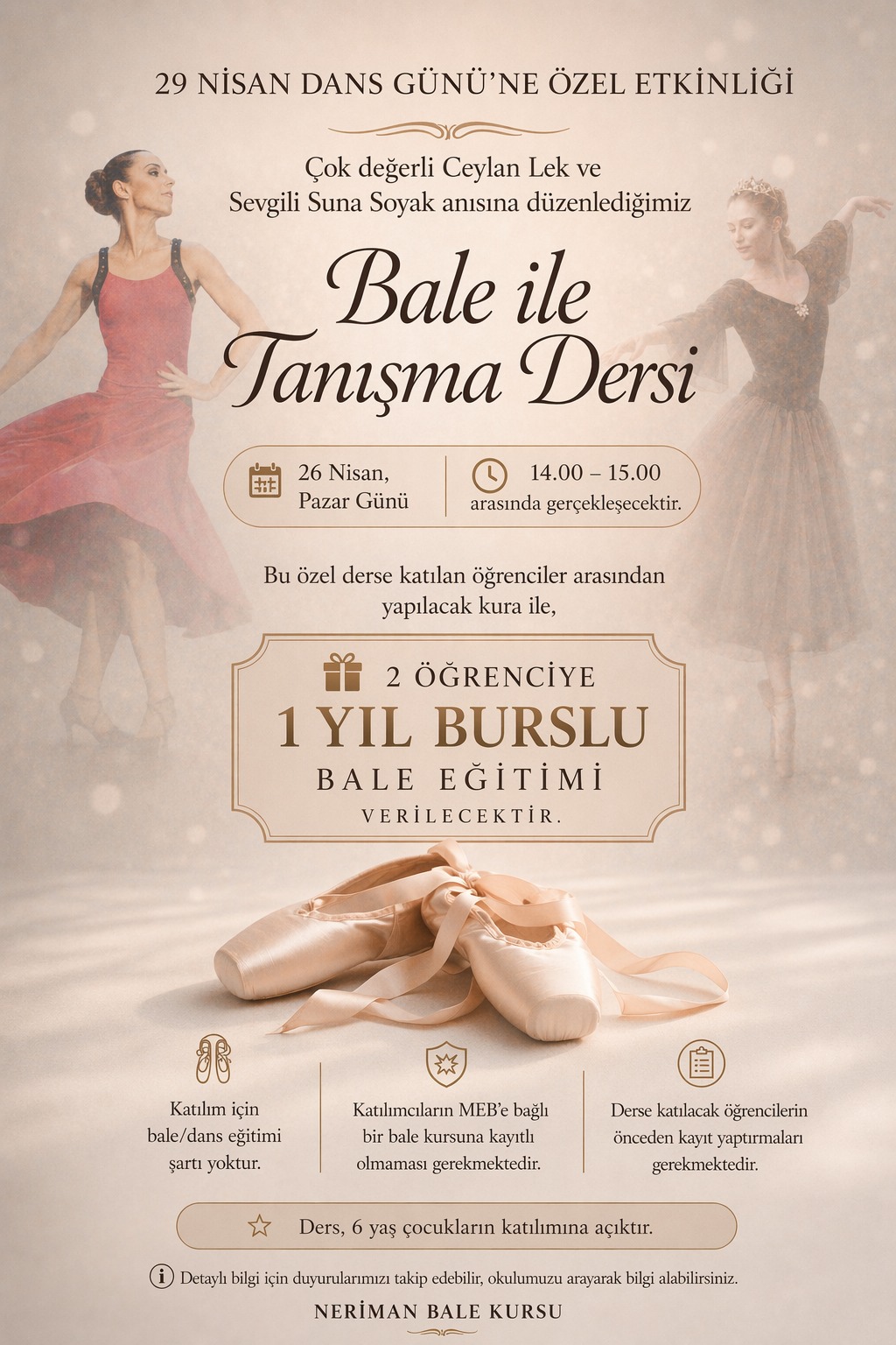 🎁 2 öğrenciye 1 yıl burslu bale eğitimi verilecektir.